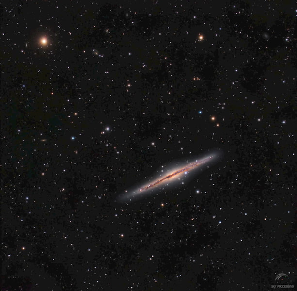 Vous pourrez mettre en place un suivi, disposer alors d'un temps de pose plus long et bénéficier du grossissement offert par votre téléobjectif, prendre des centaines de photos et les empiler avec SIRIL pour obtenir un bruit minimum.