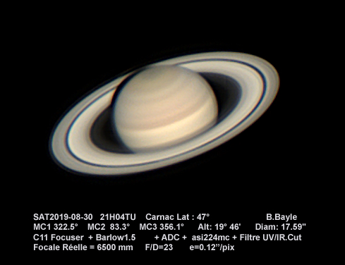 D'autres contraintes viennent s'ajouter: le choix de la caméra déterminé par son capteur couleur ou monochrome (le mono est plus sensible), la taille des pixels de ce dernier (je vous épargne les considérations sur l'échantillonnage de l'image, et de la formule de Nyquist) l'utilisation de filtres colorés pour relever les contrastes de bandes nuageuses par exemple, les difficultés de mise au point de l'image... Mais avec un peu de pratique, cela vient et on obtient de TRES bons résultats. C'est d'ailleurs la meilleure façon d'obtenir des images en planétaire.