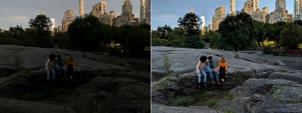 Voici une illustration de l'augmentation du temps de pose. A gauche, ce dernier est trop court, à droite en revanche, il est bien réglé.